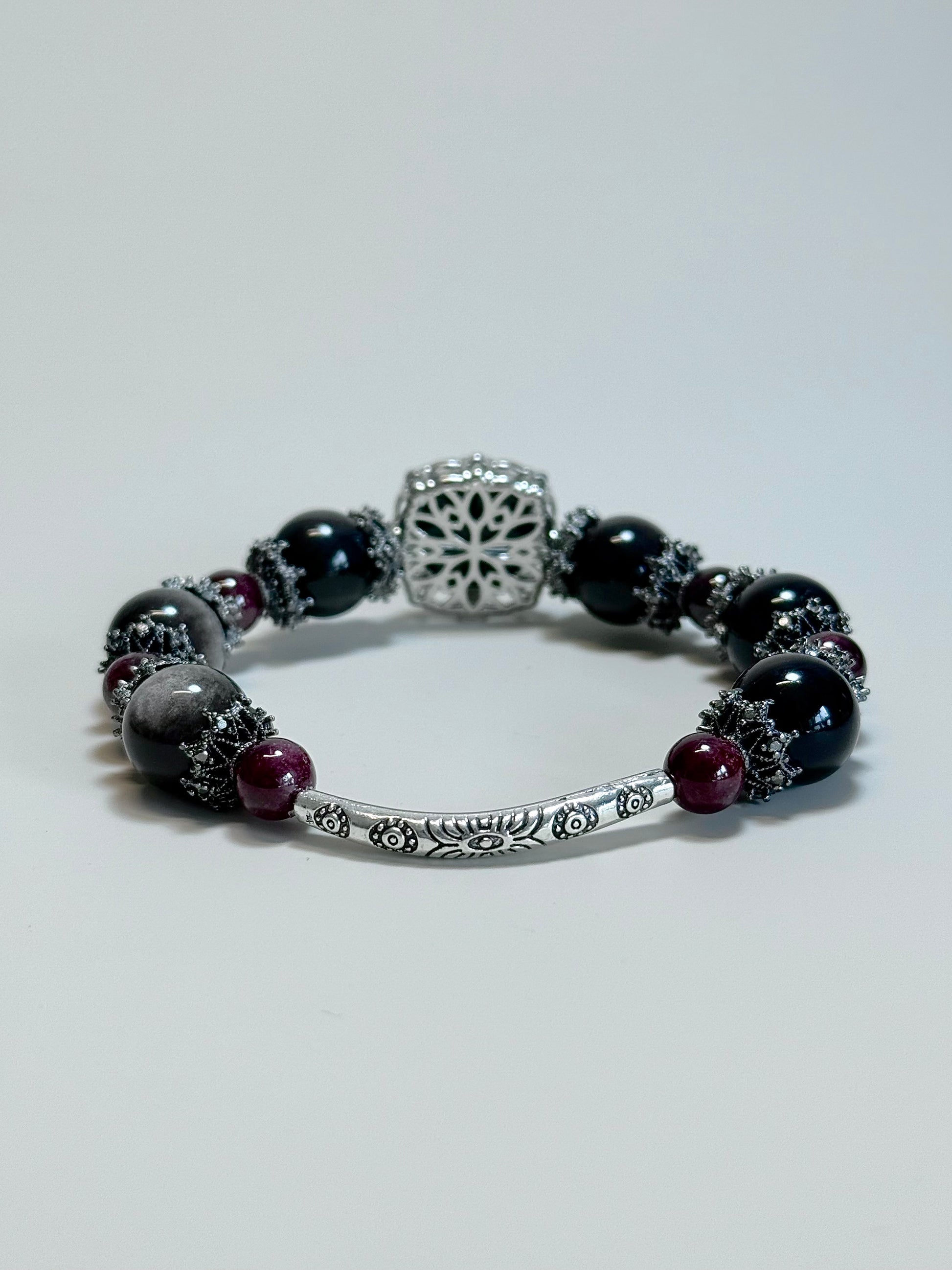 Red garnet, Sliver Obsidian & Black pearl