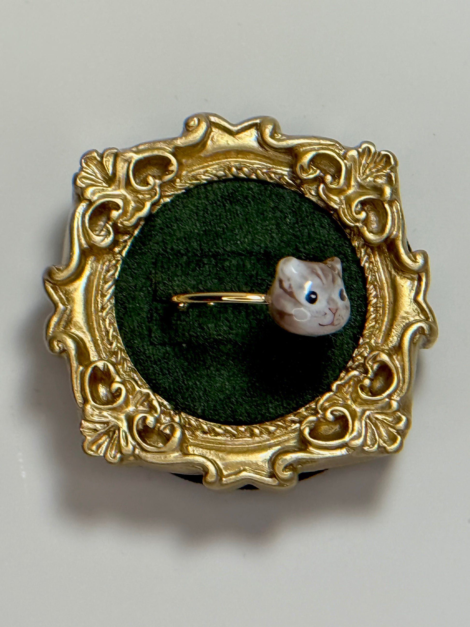 Celebrate the bond with your beloved pet in timeless style. Each ring is carefully handcrafted with clay and finished on 18K gold plated ring. Every detail is individually hand-painted, making each piece a true work of art.