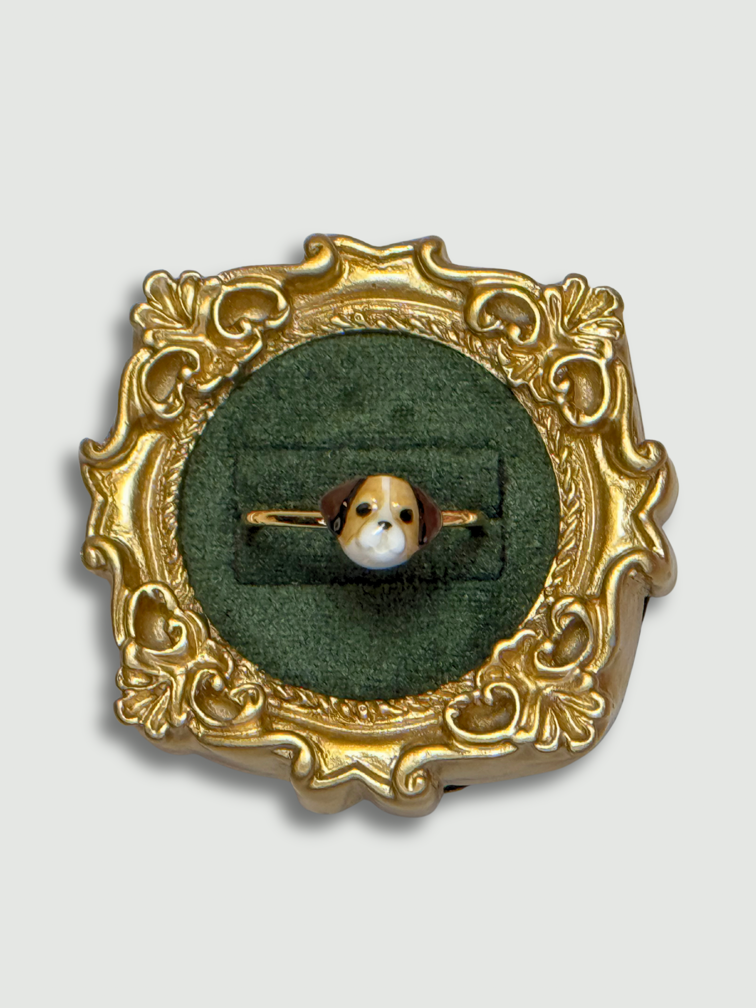 Celebrate the bond with your beloved pet in timeless style. Each ring is carefully handcrafted with clay and finished on 18K gold plated ring. Every detail is individually hand-painted, making each piece a true work of art.