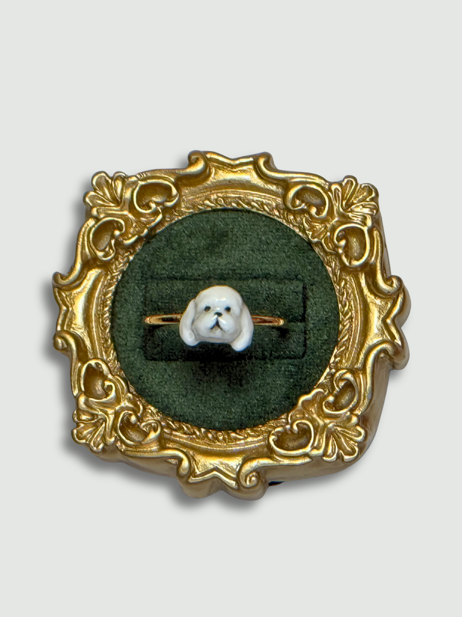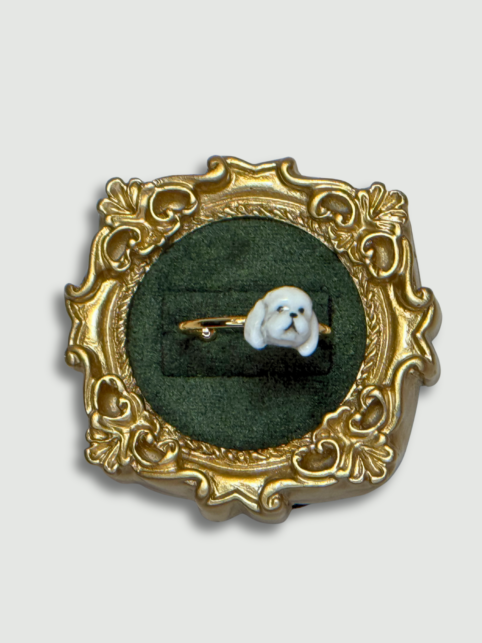 Celebrate the bond with your beloved pet in timeless style. Each ring is carefully handcrafted with clay and finished on 18K gold plated ring. Every detail is individually hand-painted, making each piece a true work of art.